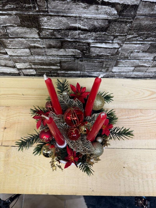 Schöner Adventskranz in den Farben Rot und Gold.